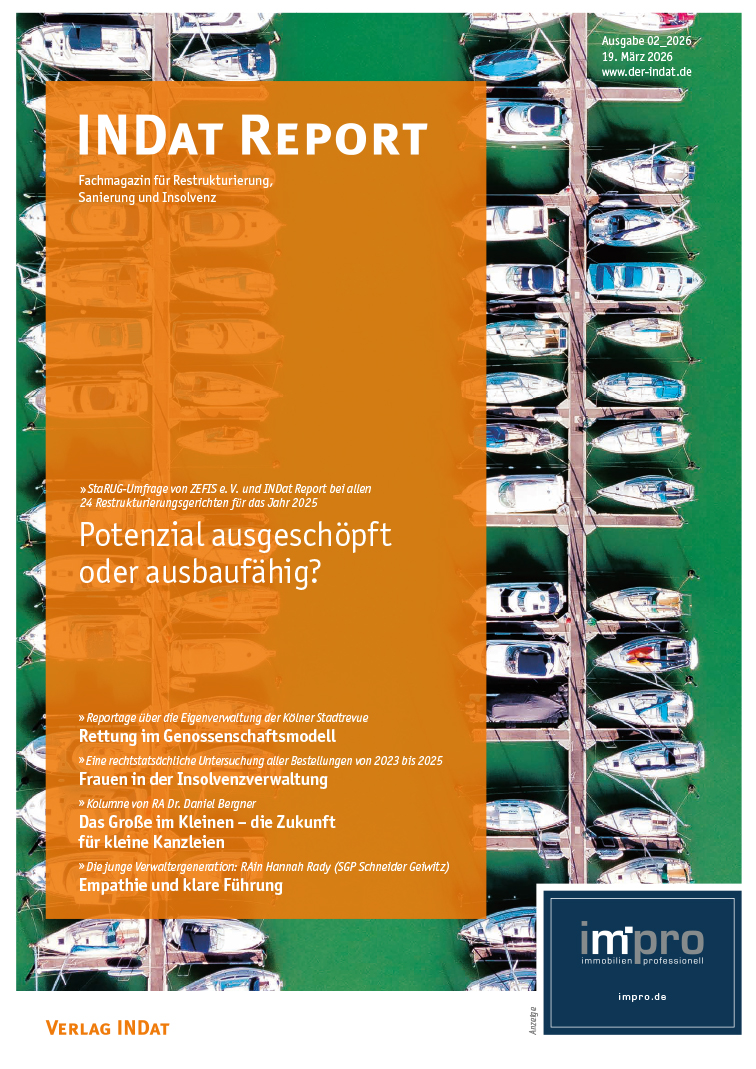 Der INDat Report liefert mit seiner journalistischen und unabhängigen Berichterstattung zu allen Themen rund um Restrukturierung, Sanierung und Insolvenz ein regelmäßiges Update der Branche.